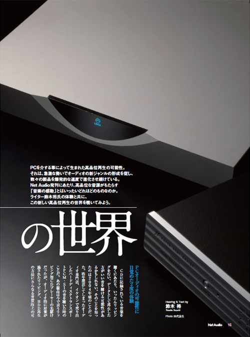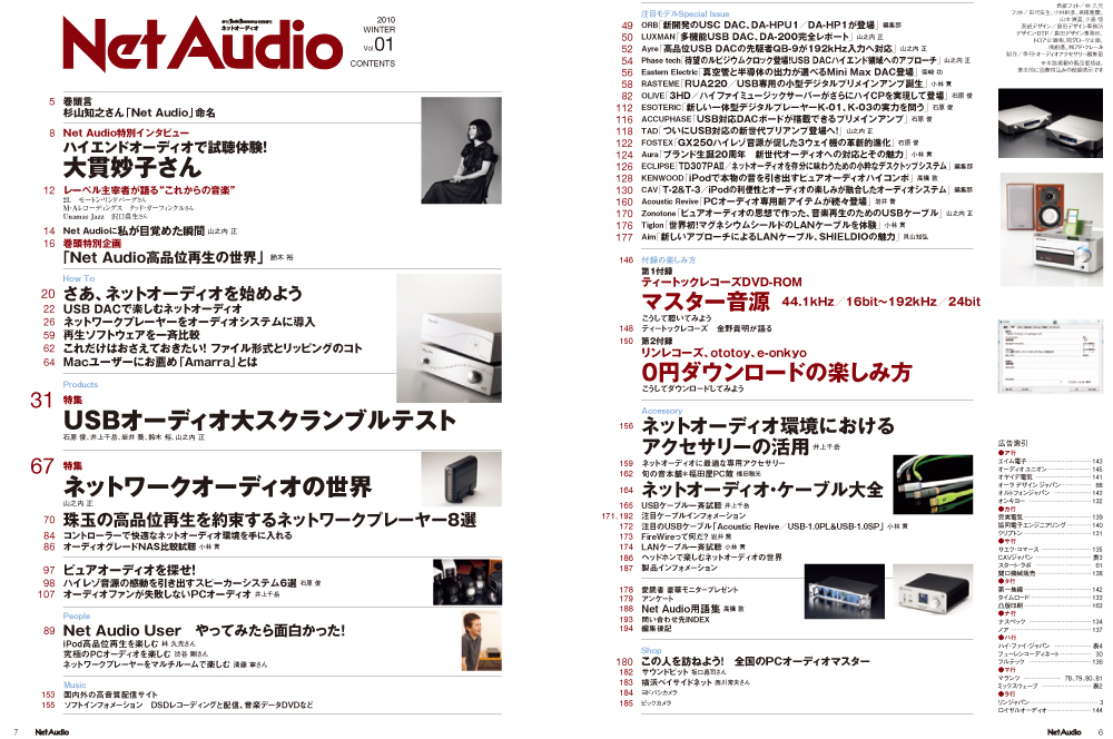 その後、ネットオーディオ時代の音楽の在り方や、音質についてのレポートが続き、導入方法、試聴レポート、付録の楽しみ方、ソフト紹介、ショップ紹介という流れとなっています。