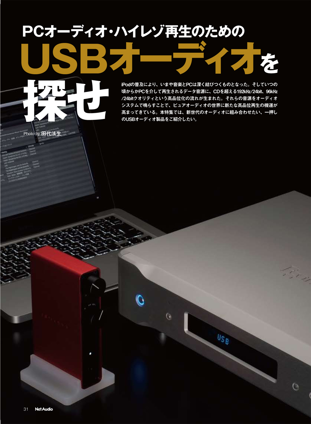 試聴レポートは、USBオーディオ、ネットワークオーディオ、オーディオグレードUSBケーブル・LANケーブル・NAS、USB対応のピュアオーディオコンポ、ネットオーディオ時代に適したスピーカーシステム、またネットオーディオに使えるオーディオアクセサリー……これらすべてを網羅!