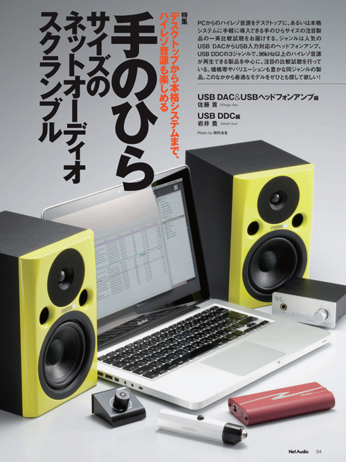 ネットオーディオの振り幅はとても広いものがあります。ここでは、“手のひらサイズ"の注目製品の“一斉比較試聴"を敢行。人気の小型USB DACからUSB対応のヘッドフォンアンプ、またUSB DDC等々、96kHz以上のハイレゾ音源が再生できる製品をはじめ、価格帯やバリエーションも豊かに紹介しています。