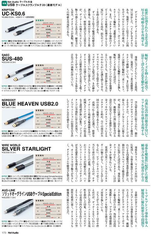 USBケーブルあるいはLANケーブルによるクオリティアップは、ネットオーディオの使いこなしにおいて、かなり効果的なアプローチであることが取材を重ねるうちに分かってきております。ここでは関連ケーブルを実際に比較試聴したレポートを一挙に掲載しています。