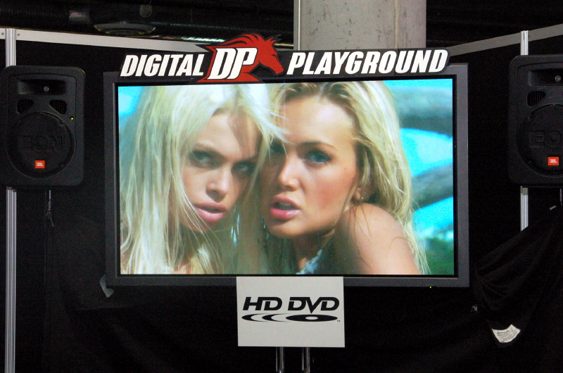 これらの対応を受けて、米アダルトビデオメーカーはHD DVDでのタイトルリリースに力を入れ始めている。「2007 International CES」で、多くのカンファレンスが開かれたSands Expoでは、同時期にアダルト関連の総合展示会「AVN Adult Entertainment Expo 2007」が開催されていた。実際に会場を見て回ったが、Digital PlaygroundやVIVID Videoなど多くの大手アダルトビデオメーカーが、HD DVDでのタイトルリリースを告知。タイトル数ではBDを完全に圧倒していた。