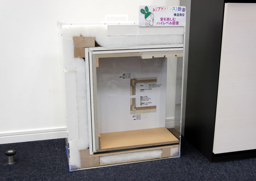 なお、防音について同社では「B(Basic)防音」「A(Advance)防音」「S(Special)防音」という3段階のレベルを設定。ショールームにはA防音とS防音の防音室が用意され、それぞれの部屋での音漏れの違いなども分かるようになっています。
