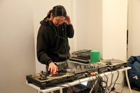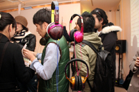 こちらの会場はクリエイティヴスタジオ「ANSWR」のオフィスに併設されたカルチャースペースで、日々さまざまな企画展やワークショップ、ライブイベントなどが開催されています。今回のリリースパーティでは「KOTORI」シリーズの展示や、「TH-7B」と「TH-5(B/W)」をベースに服飾ブランドgalaxxxy、音楽レーベルBLACKSMOKER、格闘技系アパレルブランドreversalとの数量限定コラボレーションモデル(
