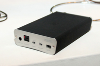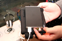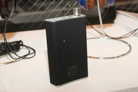 HP-P1」も登場していました。デザインを担当されたメチクロさんいわく、「持ったときの質感にもこだわった」とのこと。黒色樹脂塗装はざらりとマットな質感で、ちょっと革っぽいです。底面の曲線(これが他にはない感じでキレイ)と相まって、ウィスキーボトルみたいなお洒落さが漂ってました。この樹脂塗装は持つうちにどんどん馴染んで感触が変わってくるそうですよ。音も外観も、使い込むと馴染んで変わっていく製品なんだな、面白いなー、と思いました。