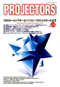 「PROJECTORS」Vol.13 PJ総合研究所/定価1,500円/A4 112ページ 2005年5月27日発売 <主な内容> 「PROJECTORS」誌の最新号「Vol.13」です。表紙に「ホームシアター」と銘打った 今回のPJ測定特集は「16モデル」の参加。特にシアターモデルの参加数は今回最多の 特集記事は「先端技術/話題のモデルを解剖する」です。新技術、新ディスプレイを さらに話題も盛り上がってきた「PTV」(リアプロ)の取材も集中し行いました。第3