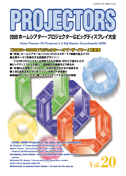 「PROJECTORS」Vol.20 PJ総合研究所/定価1,500円/A4 112ページ 2008年12月1日発売 業務用ディスプレイでも急速に伸びているビッグディスプレイ分野を取り上げます。始めに特集としてヒビノ、クリスティ2社の製品から見たビッグディスプレイ市場を取材しております。 恒例のプロジェクター測定ページも、購入時の比較資料として活用できる実測データを展開しています。注目されている最新ホームシアターモデル、さらにマイクロプロジェクターなども含め、総数17モデルを公表、それぞれが注目すべきデータかと思います。購入を検討される方はぜひご一読ください。 もう1つの目玉がフルHDプロジェクター&フルHDテレビの最新情報の掲載です。いま技術の潮流はどうなのか、購入にあたってリビングやホームシアターに導入するための注意点はどこにあるか、などを紹介しております。そして次世代ディスプレイと目される有機ELやFED、これらの最新情報も取材記事を交えて掲載しております。 ちょっぴり辛口で口コミも交えながらのディスプレイ情報、これらは本誌から取り出せるのではないかと考えておりますので、どうぞご愛読いただけますようお願い申し上げます。 <PROJECTORS>編集部