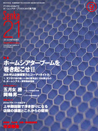 特集 ホームシアター ブームを巻き起こせII 決め手は店頭提案力とコーディネイト力 提言「商戦前夜!販売店の運命を決するのは販売力だ」 恵まれている市場環境/目指すはナンバーワン戦略/高付加価値販売が業界を隆盛に導く ホームシアター環境徹底検証 <薄型大画面&セットスクリーン>待望の新商品発表で売り場づくり加速へ <サウンドシステム>身近になる単品システムの世界 <カジュアルスクリーン革命>検証!団塊ジュニア層、その実像を解剖する <スクリーン最前線>保存版 一挙掲載!有力メーカー スクリーン商品総覧
