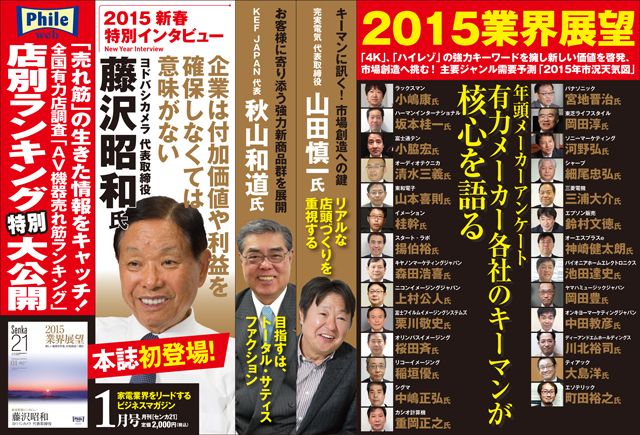 (株)ヨドバシカメラ 企業の目的は存続すること キーマンに訊く!市場創造への鍵山田慎一氏 クローズアップKEF JAPAN/お客様に寄り添うKEFの新商品群 四半期売れ筋ランキング 2014年7-9月 ソニーマーケティング&シャープ懇親会 エソテリック/トップエンドシリーズ完成、新たなステージへ継承 ジョウボーン「UPシリーズ」に新商品登場