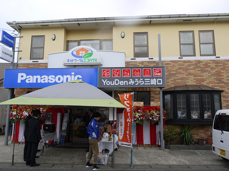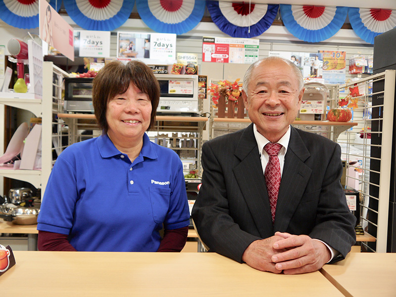 元気な地域店・パナソニックショップ周年祭 皆様の支えを感謝して迎えた60周年 創業60周年の節目に新装オープンを果たしたYouDenみうら三崎口店。セレモニーで挨拶に立った岡野社長は「商売は自分たちの力だけでやれるものではない。まわりの方々が力のない我々を支えてくださったおかげと感無量です。これを再スタートとして、未来に向かってこれからも地域の皆様に愛される店となるよう頑張ります」と、瞳を潤ませ決意を語った。 社長夫人である冨美子さんの父君が創業者。冨美子さんは松下幸之助商学院で第1期生として学んだ。岡野社長は販売会社を経て第9期生として商学院に学び、40年前に同店に入社。 “パナソニック1本”でやってきた、と胸を張る冨美子さん。 「一番大事なのはお客様とのつながり。販売以上に、その後のフォローが業務の要になります」と語る。 不具合などで助けを求めるお客様から、日々連絡を受けて精力的に活動する。心を込めて丁寧に対応していく中で、自然に買い替えにつながる。訪販活動はしていないという。 「冷蔵庫を買われて10年間音沙汰がない方が突然、壊れたから買い替えたいと連絡をくださる。お客様はつながっていると思ってくださるのですね」と、地域の中で厚い信頼を重ねている。 60年間の中で、家電の商売の大きな変化を実感する。「昨今のネットワーク家電など、お客様も興味を持っておられます。ご自分では設置や設定ができないと頼ってこられる時が店の出番。我々もしっかりと力をつけて、様々な変化に対応していかなくては」と気を引き締める。 長い商売経験の中で「これまでやってきたペースをある程度保つ方がいい」と認識、活動のピッチを上げすぎない。販促活動はLE社のキャンペーンに連動した形で行っている。「電気屋は地域の中でも特殊な存在で、なくなっては困るもの。そこに希望をもって、時代に合わせてやっていく」と自然体。 9月にはLE社の提案で、汐留ショールームにお客様を招きリフォーム商材を体験するバスツアーを実施し、成約に結びつけた。「今後はリフォームも重要。しっかりやっていきたい」と、外壁に看板も設けてアピールする。 同店を本部として、三浦、横須賀地区の6店でYouDenグループを結成する。5年前にLE社の提案で実現したという。「日頃から深い付き合いで本音を言い合える仲間たちだったので、スムーズに組織化できた。月間で会議をもって情報共有し、お互いに切磋琢磨しています」と協力しながら進む。 お客様、従業員、組織店、そして販売会社に助けられている、と感謝の思いを深くする。「LE社のメンバーとは日頃から親しく付き合っています。店は販売会社のお客ではない。我々は一緒に戦う仲間ですから、一緒にやる気を高めたい。とにかく、皆でやるのが好きなんです」と語る岡野社長。さらなる活躍に向け腕を鳴らす。