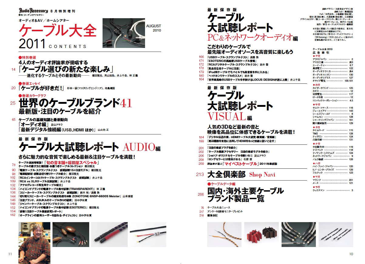 本誌は1冊丸ごとケーブルで構成する、より良い音質と画質を楽しむのに必須の優れたケーブル選びの必携ガイドとして、2年間手元に置いてフル活用できるオールカラーの保存版です。最新号は「ケーブルの進化」にスポットを当てました。根強い人気の電源ケーブルから各種音声ケーブルに加え、いま最先端の分野「PCオーディオ」編も新設。USBなどデジタルケーブルの試聴レポートも特集しました。また、地デジやブルーレイ、話題の3D映像も含めてデジタル接続に欠かせないHDMIケーブルも充実のラインアップでご紹介しています。なお、紙媒体に加えて、富士山マガジンサービスにてオンライン電子ブックも併売し、新たなニーズにも対応しています。立ち読みページもご用意していますのでぜひともご覧いただき、それぞれフル活用下さい。
