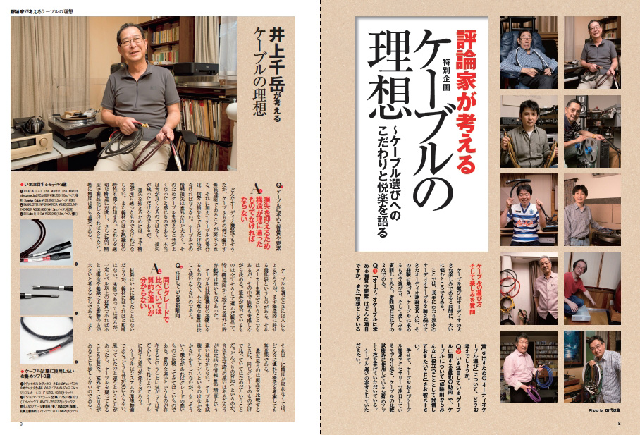 ケーブル選びはオーディオの大きな楽しみであると同時に、大いに悩むところ。そこで、長年にわたり数多のケーブルを聴き続けてきたオーディオ評論家10人に、その経験に基づく「ケーブルに求める要素」「ケーブルの選び方」「ケーブル選びの楽しみ」について、ズバリQ&A形式で語っていただきました。音のプロフェッショナル達10人それぞれの視点から、どのような視点でケーブルを選ぶべきか、吟味選択の価値や魅力など、「ほかでは知り得ないケーブル選びの極意」が満載の内容となっております。