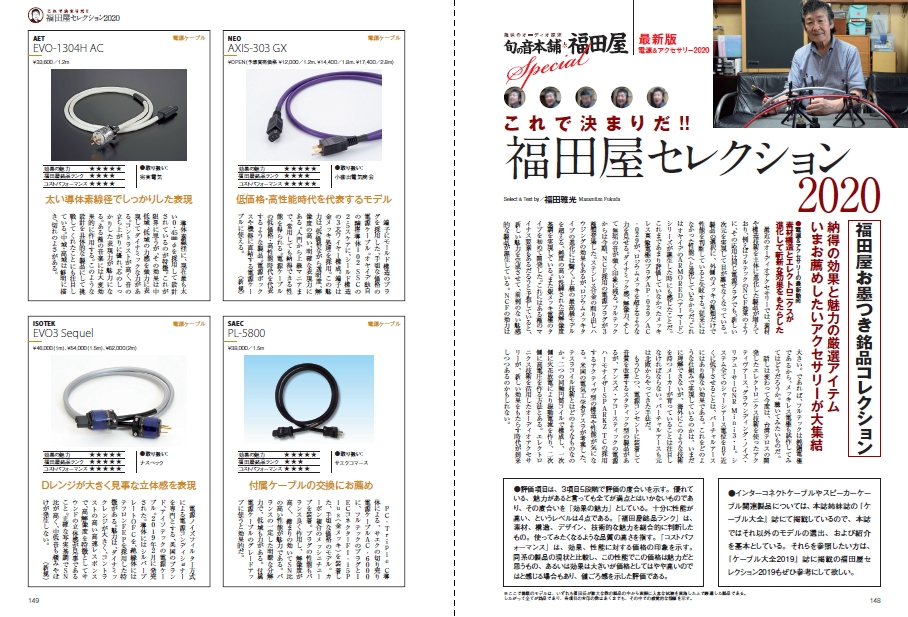 ●最新版/厳選・銘品 電源&アクセサリー福田屋セレクション2020 福田雅光 『季刊・オーディオアクセサリー』誌の好評連載企画「旬の音本舗*福田屋」の執筆を続けるオーディオ評論家、福田雅光氏が、膨大な数にのぼるケーブルやアクセサリーの試聴を日々重ねるなかで、納得の効果と魅力を備える銘品だけを厳選してご紹介する、大好評のスペシャル企画の最新版です。福田屋お墨つきのお薦めアイテム2020年版、ここに発表。 新製品・先取り情報 本誌注目アイテム「特選アクセサリー2020」 電源とアクセサリーならこのお店にお任せ! 生え抜きショップのノウハウ紹介 ・シマムセン ※本誌は、新規/初出レポートのほか『季刊AudioAccessory』『季刊analog』誌からの転載を含めて構成しています。 毎号大好評、売り切れ必至。ご購入はお早めにどうぞ。 定価2,000円(税込) / A4変形判、頁数:約226ページ |