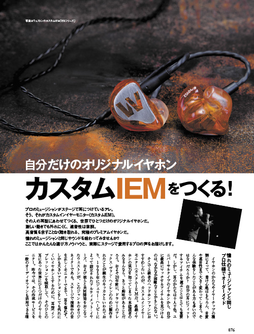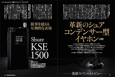 巻頭では、イヤホンの世界に革命を起こす、シュア初のコンデンサー型イヤホン「KSE1500」を、高橋敦氏がいち早くレビューします。