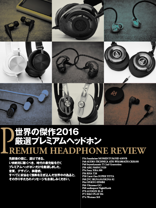 本当に価値のあるヘッドホンだけを厳選、その魅力に迫る「プレミアムヘッドホンガイドマガジン」。巻頭特集は「世界の傑作2016プレミアムヘッドホン」。すべてに妥協なく情熱を注ぎ込んだ世界中の逸品の魅力に迫ります。また、いま話題のハイレゾプレーヤーの徹底レビュー、ベストセラーヘッドホンと据置型ヘッドホンアンプのスクランブルテスト、今にわかに盛り上がりを見せる平面型に迫った「平面型ヘッドホンの世界」など、ヘッドホンの奥深い世界を楽しむ企画を取り揃えています。さらに、本誌オリジナルのヘッドホンカレンダー付き。書店でぜひお手に取ってご覧ください。