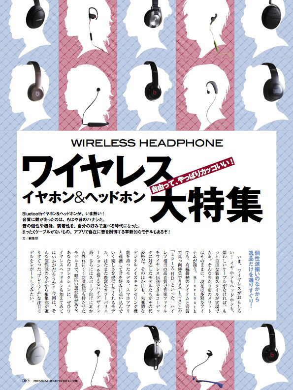 Bluetoothイヤホン&ヘッドホンがいま熱い! 音質に難があったのは、もはや昔のハナシ。音の個性や機能、装着性を、自分の好みで選べる時代になりました。まったくケーブルがないもの、アプリで自在に音を制御する革新的なモデルもご紹介します。 <掲載モデル> ●ヘッドホン ●イヤホン 特集カスタムIEMの世界