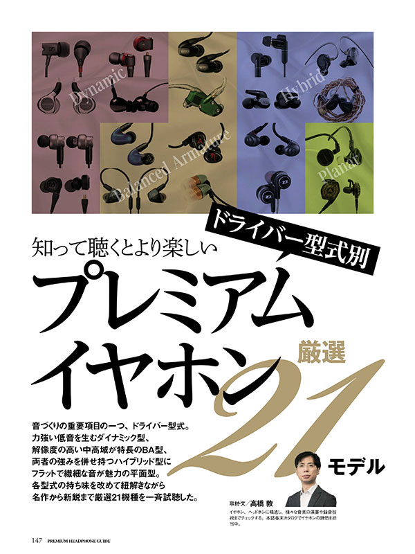 話題の新鋭からあのレジェンドモデル、セレクトに自信の個性機まで、プレミアムイヤホン21機種を型式別に一斉試聴!ドライバー構成の概説、1モデルごとのプロフィールと試聴感想をまとめた内容はイヤホンデビューの1台目選びにも、次を探す2台目選びにも役立つこと間違いなしです。 <掲載モデル> 特集今が買いの5万円前後ミドルクラス!