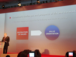 IFAの展示は、人々のライフスタイルに根付いたかたちで商品の魅力を見せ、それぞれの「ネットワーク」のかたちまでもが一望でき、体験できることが他の見本市にはない特長だと考えています。エレクトロニクスのトレンドセッターであり、また世界中のトレードビジターとコミュニケーションが築ける場としても、ぜひIFA2012のメリットを最大限に活用していただきたいと思います。