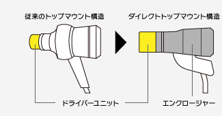 専用設計のエンクロージャー先端にドライバーユニットを直接固定した「ダイレクトトップマウント構造」を採用。ドライバーユニットの性能を引き出し、低音から中高音まで迫力ある高解像度サウンドを実現。遮音性がより高まることから、外部音と音漏れも大幅に低減できるメリットが生まれる