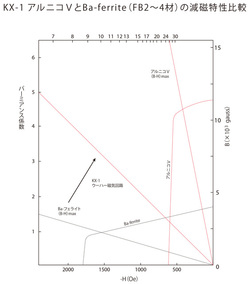 通常はエネルギーが最大積になるように設定するのですが、KX-1ではあえてエネルギー積を最優先しないで、パーミアンス係数をアルニコに似た特性になるように設定しました。効率は悪くなりますが、フェライトならばあまりコストの心配をせずにサイズを大きくすることで補えるのです。このようにしてフェライトながら「アルニコライクな音」を可能としたのです。