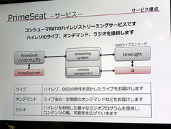 「PrimeSeat」は昨年の12月23日からスタートした、最高DSD5.6MHzのハイレゾ音源を生放送のライブやオンデマンド、インターネットラジオの形で無料提供するストリーミング型の音声配信サービスだ。