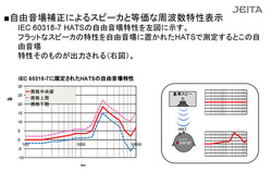 JEITAによる新たな測定方法では、メーカーが「自由音場補正周波数特性」とともに、使用したダミーヘッドの自由音場特性、またはヘッドホン/イヤホンの自由音場補正を行う前の周波数特性のどちらか、あるいは両方を示すことが求められている。
