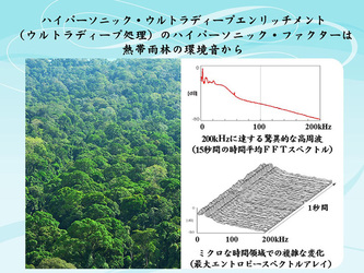 仁科:「ハイパーソニック・ウルトラディープ・エンリッチメント」、略して「ハイパーソニック・ウルトラディープ処理」は、「交響組曲 AKIRA 2016」のために大橋先生が開発した技術です。この作品では、DVDオーディオ用のマスター(96kHz/24bit)と一部CDマスター(48kHz/24bit)を使用しているので、最大48kHzまでの帯域の信号しか元の音源に入っていません。これに、熱帯雨林で録音してきた環境音の、人の耳には聴こえない超高周波をミックスするんです。