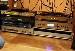 FLAIRの要の機材はすべてJVC KENWOODのプロ機器だ。モニタースピーカーはジェネレック。CD用マスターと比較して今回のリマスタはこの後の自宅での個別試聴にも書くが、音場が格段に深く立体的で陰影と音色感に富む。ハイレゾリマスタなので帯域が広く突っ張ったところがなく楽器がしなやかで柔らかくビューティフル。