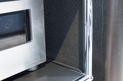 もうひとつ注目したいのが、ラックの中下段に設けられた収納スペースのトビラや側板パネルの裏側に配置したアコースティックシート(吸音シート)だ。