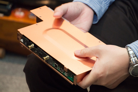 尾形氏 今回、最後までノイズ対策が最大の課題で、エンジニアは苦労しました。ノイズ除去にはフェライトコアがよく使われますが、これまで作ってきたCDプレーヤーの中で最大個数を使っています。信号経路のあらゆる部分に使っていますね。他にも様々なノイズ除去のノウハウを用いています。安全規格そのものは考慮つつ、かつ音質への影響を最小限にしていかなければなりません。