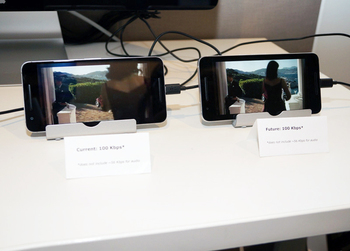 セミナーでは、100kbps前後の動画部と56kbpsの音声部で構成される約200kbpsの動画素材を2つ用意して、現行の圧縮方式に対してダイナミックオプティマイザーで処理された映像が明らかに高画質であることをデモで示していた。同じコンテンツをストリーミングした場合、消費されるデータ容量も約半分に抑えられる効果があるとのこと。