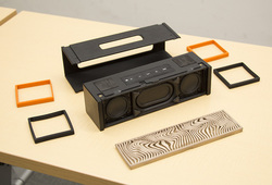 ヴァル氏 Bluetoothスピーカーで、世界初の3Dカスタマイズ可能なモデルを投入します。パーツごとに分解でき、それぞれを付け替えられます。開発に3年かかりまして、デザインも30以上作ってようやく完成しました。