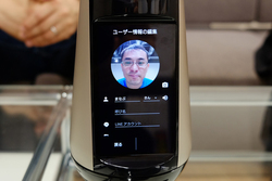もうひとつの機能が、額に乗せたカメラを活用する「見守り機能」だ。LINEに作成した家族用のアカウントにアクセスして、「家の様子おしえてコマンド」というメニューを起動すると、家族がHello!と最後に会話した時間を「お母さんを3分前に見かけました」といった感じでメッセージにしたためて教えてくれる。