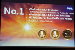 BenQではBtoB向けのディスプレイラインナップとして、プロジェクター、スマートディスプレイ、IFP、ワイヤレスプレゼンテーションデバイス、LCDモニターの5ジャンルを展開している。なかでもDLPプロジェクターは世界シェア9年連続No.1、教育向けDLPプロジェクターでも11年連続トップであり、4Kプロジェクターにおいては2018年3Qの調査にてアジア太平洋地域で35%、日本では54%のシェアを誇る。
