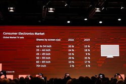 欧州のテレビ市場における現時点での大きなトピックは、「日本と同じOLED(有機EL)の販売台数の拡大」と「55インチ以上というテレビの大型化」だという。