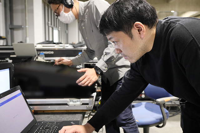 佐藤:映像系は、収録チームのカメラのスイッチアウトがくるので、基本的には、それをモニタリングしながら音と合わせていくだけですね。ただ映像と音を合わせる時に、リップシンクがずれてくる場合があるので、それを調整しています。
