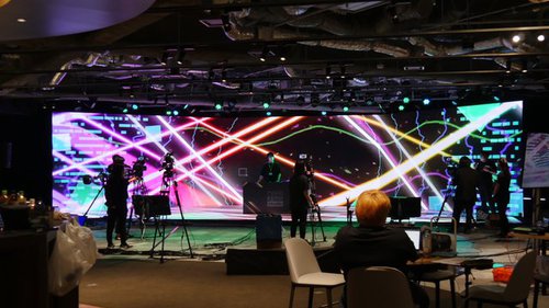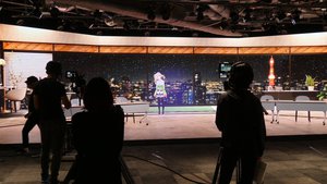 未来研スタジオは壁3面+床1面の計4面が高画質LEDディスプレイで囲まれた「A studio」と、モーションキャプチャ撮影やスチール撮影などの用途が想定された「B studio」の2つで構成されている。LEDディスプレイは4K対応の高精細2.6mmピッチLEDで、そのステージは10人ほどが同時に登壇できる広さだ。このLEDディスプレイにはゲームや実写の映像などを映し出し、それを背景にキャストが入ってくる。セットを組み替えるのではなく、映像を切り替えることで一瞬の場面展開も可能だ。素材の制作や配信環境の関係から4K対応としているが、実際には8K映像などにも対応する。