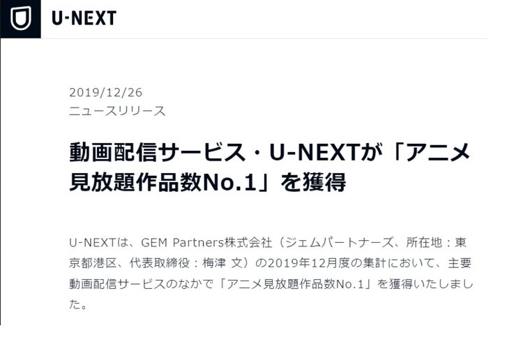 ───2019年末から現在に至るまでアニメの見放題配信数でトップを堅持しているという形でしょうか?
