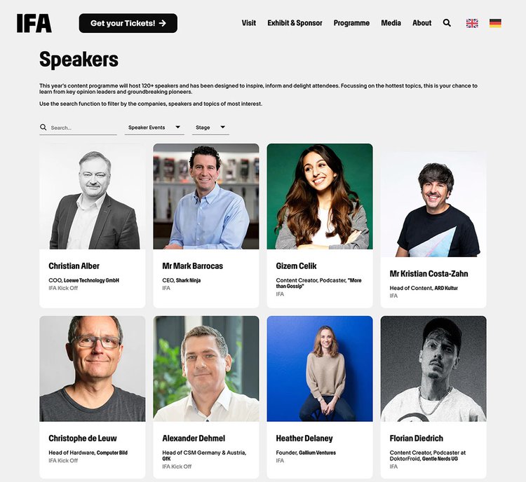 そのため、IFA 2024の開催期間中にはAIを題材にした数多くの講演会が開催される予定だ。AIをプロダクトやサービスに取り込むドイツ、欧州の著名ブランドのキーパーソン、スタートアップのエンジニア、知識人が登壇するカンファレンスがメッセ・ベルリンの会場で毎日開催される。登壇者やカンファレンスの日程はIFAのオフィシャルサイトに公開された。
