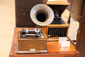 オーディオテクニカの本社は、町田市の西成瀬にあり、斬新で美しいアーティスティックな社屋がとても印象的です。広々としたエントランスホールの奥には、希少価値の高いビンテージ蓄音器などが展示され、そのほとんどは今でも再生が可能です。