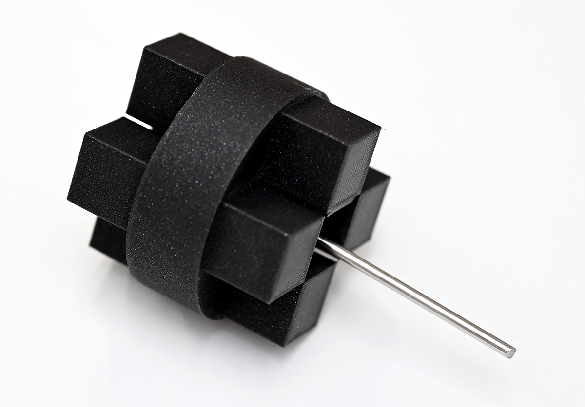 「MCカートリッジは本機のほかにもいくつかのモデルがあります。特徴としては、左右の干渉やセパレーションを向上させるため、カンチレバーの前側に右チャンネルのコイルを、その後部に左チャンネルのコイルを巻きます。この左右独立のコイルを囲むように4つのネオジムマグネットが左右用に前後に配置されます」