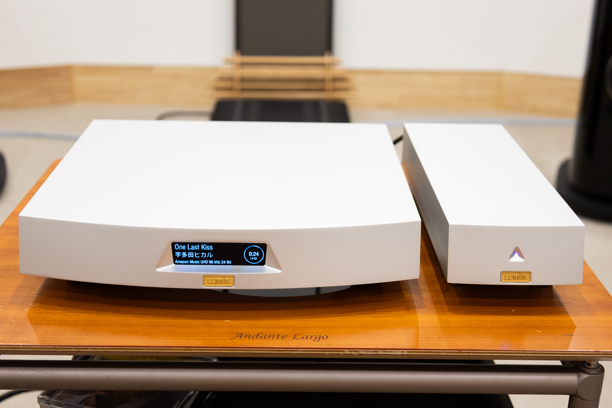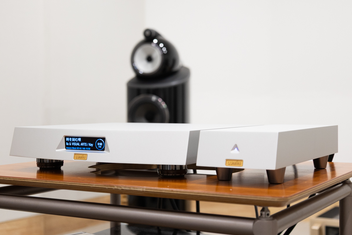 フロントパネルのLUMINのバッジがゴールドに変わった以外、X1とX2を見分けることは難しい。ラック最上段にセットし、DELAのN1A(オーディオサーバー)に音源をインストール。プリアンプにアキュフェーズ「C-3900S」、パワーアンプに「P-7500」、スピーカーにB&W「802 D4」という布陣で試聴に臨んだ。