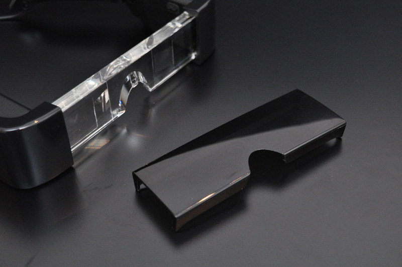 取り外しが可能なシェードを使って、シースルーで表示される映像の見え方を調整できる