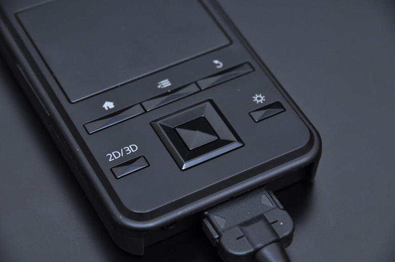 十時キーの他、3D/2Dの表示切り替えや明るさ調整のメニューボタンを配置している