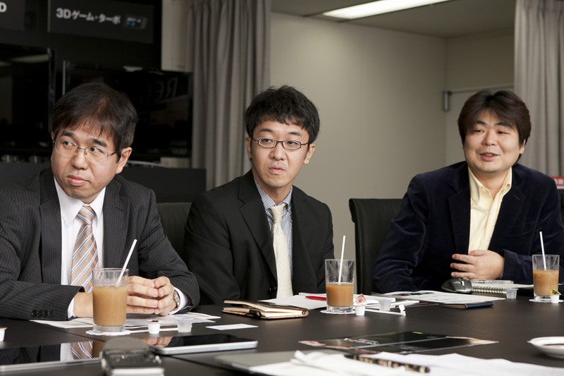 写真左より大橋史恭氏、大橋純氏、上條氏。AT700、AT3S0等のタブレットを担当