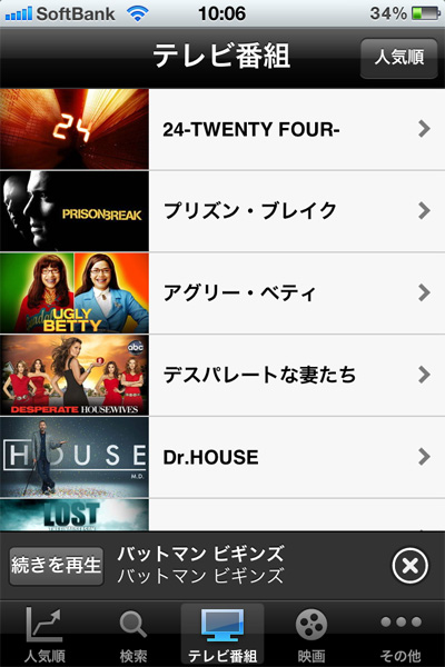 1つの登録IDで、マルチデバイスによる視聴ができるのもHuluの魅力。写真はiPhoneアプリ「Hulu」でアクセスしたところ