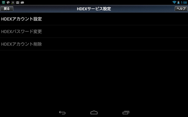 「RZ番組ナビ」のHDEXアカウント設定メニュー