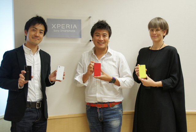 ソニーモバイルコミュニケーションズの内田考彦氏(写真左)、黒住吉郎氏(写真中央)、Linda Lissola氏(写真右)に「Xperia Z1 f」の開発背景を訊ねた
