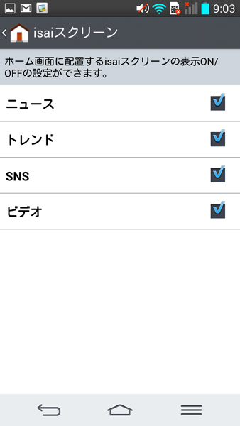 4つのカテゴリーの表示/非表示が選べる