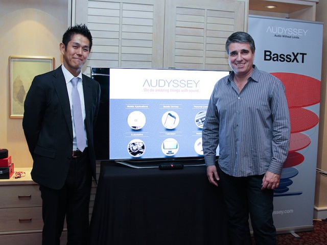 Audyssey LaboratoriesのCTOであるChris Kyriakakis氏(右)と、Business Development Managerの山中幹大氏(左)