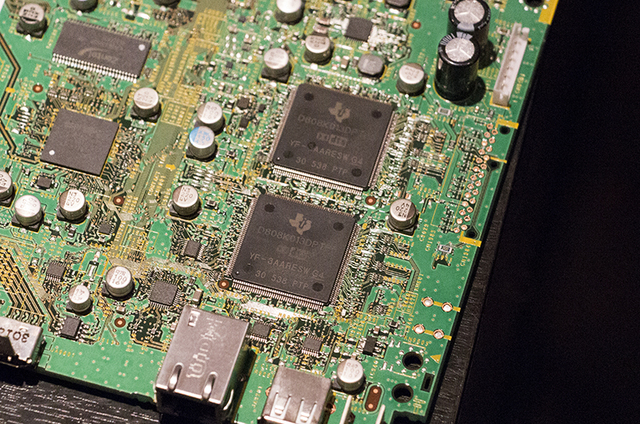 SC-LX58に搭載されたTI製DSP。同社従来モデルに搭載したものと比較して処理能力の高いものを採用した。